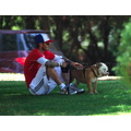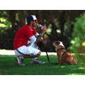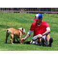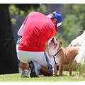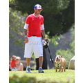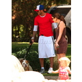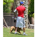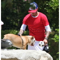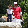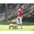 David Beckham and his adorable bulldog were spotted playing at the park the other day, and we also got a glimpse of the soccer stud's surgery scar.