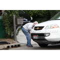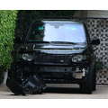 David Beckham wrecks his Range Rover in a fender bender at the end of his driveway.