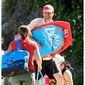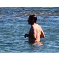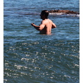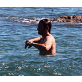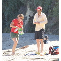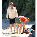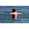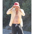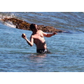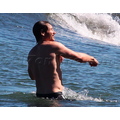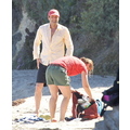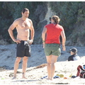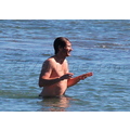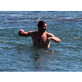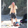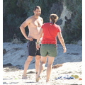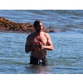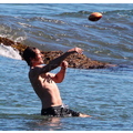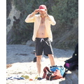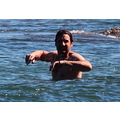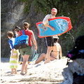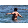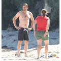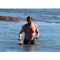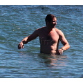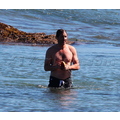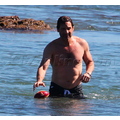 David shows off his toned body wile tossing a football in the ocean.