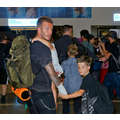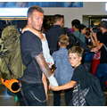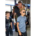 David Beckham had his hands full when we snapped him at the airport on Friday with daugher Harper and sons Cruz and Romeo.