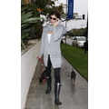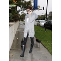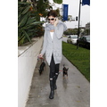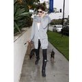 Elisabetta Canalis steps out in the rain to take her dogs for a walk.