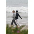 The talk show host and her wife hold hands while taking a stroll at the beach.