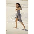 Eva Longoria strolls on the sand at luxe resort in Mexico.