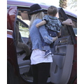 Tiger's wife is all smiles as she takes her son out to lunch for the second day in a row.