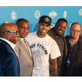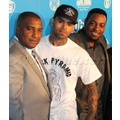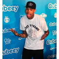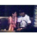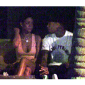 Rihanna and Chris Brown cozy up poolside at Brown's Qubeey Channel launch party in Beverly Hills, CA.