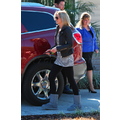 Elin Nordegren stepped out of her Orlando home yesterday to take daughter Sam to school.