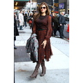 Eva Mendes turned heads in NYC, smililing for photos at the Late Show with David Letterman.