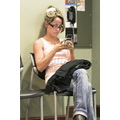 Teen Mom Janelle Evans texts while waiting at the courthouse.