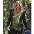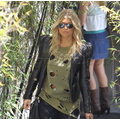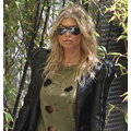 Fergie showed off her belly button in a sexy destroyed t-shirt on her way to Las Vegas for the Billboard Music Awards.