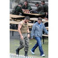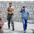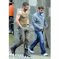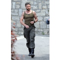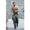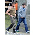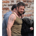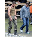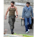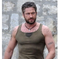 Gerard Butler showed off his muscles on the set of Coriolanus in Belgrade, Serbia.
