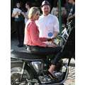 The young model struck a pose on a motorcycle.