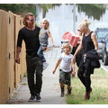Gwen Stefani and Gavin Rossdale escort Kingston and Zuma to a birthday party in LA.