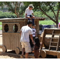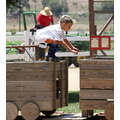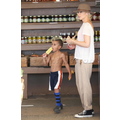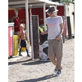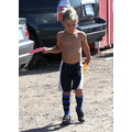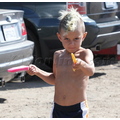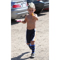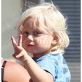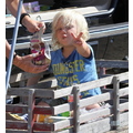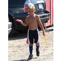 Kingston Rossdale tears up the sidewalk at a local park as mom Gwen Stefani looks on.