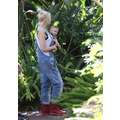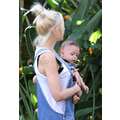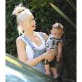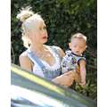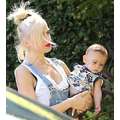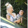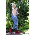 Gwen Stefani was spotted out and about with her infant boy Apollo. The pop diva wore denim overalls, with a white top and deep red boots for a quick trip to the recording studio.