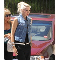 Gwen Stefani pairs a denim vest with yellow Louboutins for a hot, rocker look.