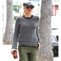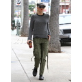 Gwen Stefani kept it casual in a checkered top and cargo pants when we spotted her running errands in Beverly Hills on Friday.