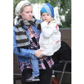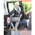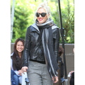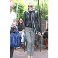 Yesterday Gwen Stefani and son Zuma ran errands with the nanny in Beverly Hills, and the fashionista rocked a leather jacket and cozy scarf.