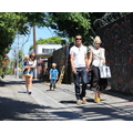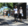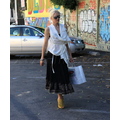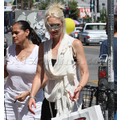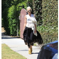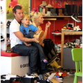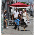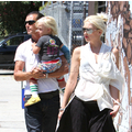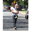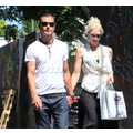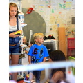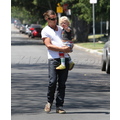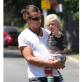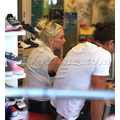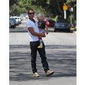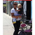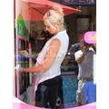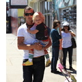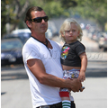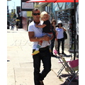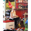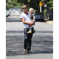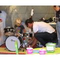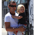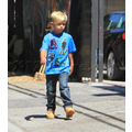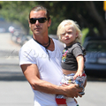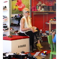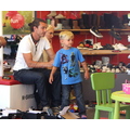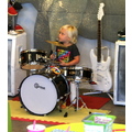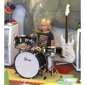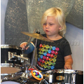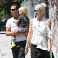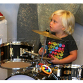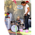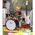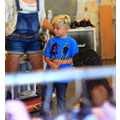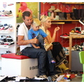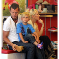 Gwen Stefani and Gavin Rossdale's littlest, Zuma, tests out a drum set at the shoe store.