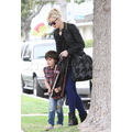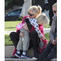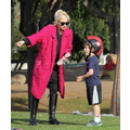 Gwen Stefani takes Zuma and Kingston to a birthday party in the park.