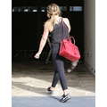 Hilary Duff dressed in slimming black for her casual Friday workout before she sets out to acquire a new wardrobe.