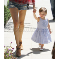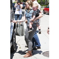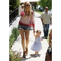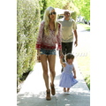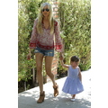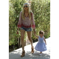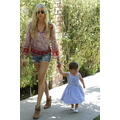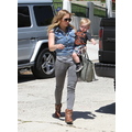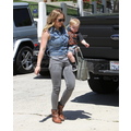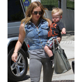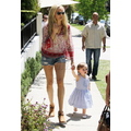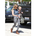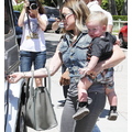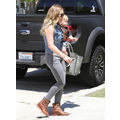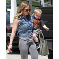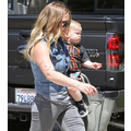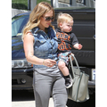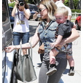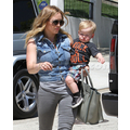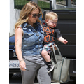 Kimberly Stewart and Hilary Duff give their kids a ride on their hips.