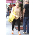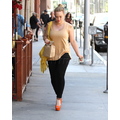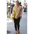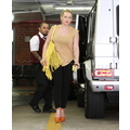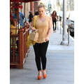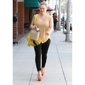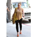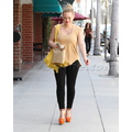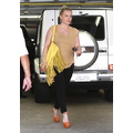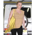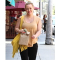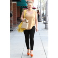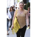 Hilary Duff struts her stuff with a bright yellow fringed bag.
