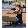 Hilary Duff donned a fedora for an afternoon with son Luca at a local Beverly Hills park.