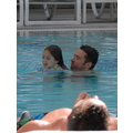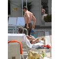 Hugh Jackman makes a splash with his daughter in the hotel pool in Rio!