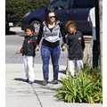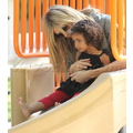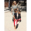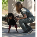 The supermodel dons a jumpsuit for an afternoon in the park with the kids.
