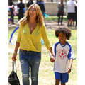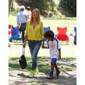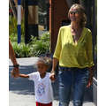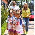 Heidi Klum pulled on a bright yellow top to fight eh hot sun in Brentwood. The super-mom was out with boyfriend Martin Kristen for soccer Saturday, with children Leni, Henry, Johan and Lou.