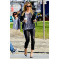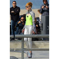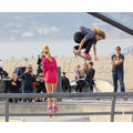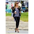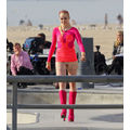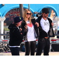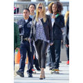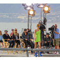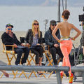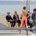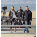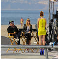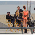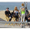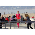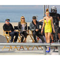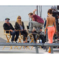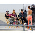 Heidi Klum tapes an episode of Project Runway at the beach.