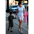 Hilary dressed for the unseasonbly warm weather in a white tee and shorts that showed off her hot body.