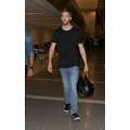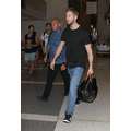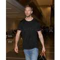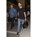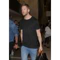 Calvin Harris smiled for the cameras and posed for photos with fans at the airport on Tuesday night.