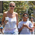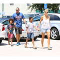 Heidi Klum and her family out getting some sun in Brentwood and her boyfriend Martin Kristen and her brood grab some sweet treats at Starbucks then head to Whole Foods Market afterwards.
