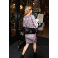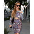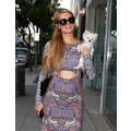 Paris Hilton steps out in a colorful dress on Beverly Drive where she went shopping with her new Pomeranian pup, Prince Hilton.
