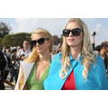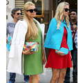 Paris and Nicky Hilton coordinate at the Valentino show during Paris Fashion Week on Sept. 30, 2014.