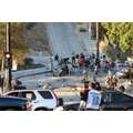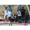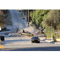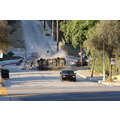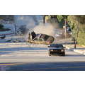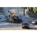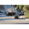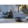 Charlie Hunnam filmed a crazy car crash scene in Los Angeles on Monday for the final season of Sons of Anarchy.