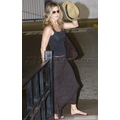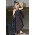 Jennifer Aniston looks gorgeous in her casual Friday wear: tank top, no bra, long skirt and flips.