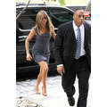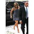 Jennifer Aniston shows off her big-o-rock. She also flauting her great legs as she is running into The Crosby Hotel.