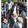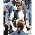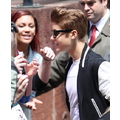 Justin Bieber greeted a sea of screaming fans outside of the Tribeca Disruptive Innovation Awards in NYC on Friday.