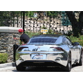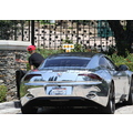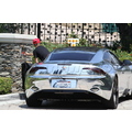 Justin Bieber sports around in his birthday gift - a chrome-wrapped Fisker Karma!