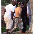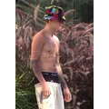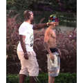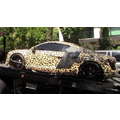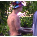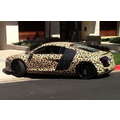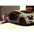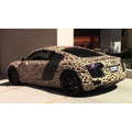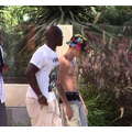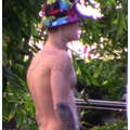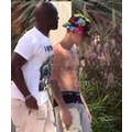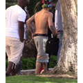 Justin Bieber hangs out, sans shirt, at his Beverly Hills condo, as his leopard-skin Audi is returned from West Coast Customs.