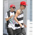 Justin Bieber and his buddies lunched at the Outback Steakhouse in Burbank on Tuesday afternoon.