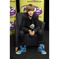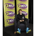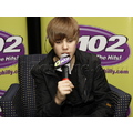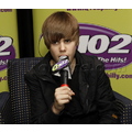 Justin Bieber answers questions and greets fans at the Q102 radio station in Philly.