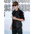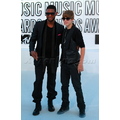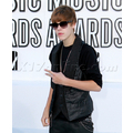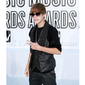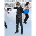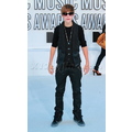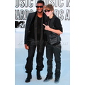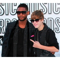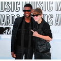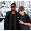 Justin Bieber posed with Usher on the white carpet at the 2010 MTV VMAs.