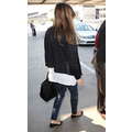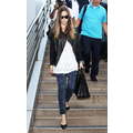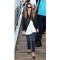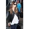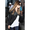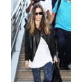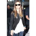 Jessica Biel rocks some cropped jeans and leather jacket at LAX.