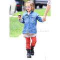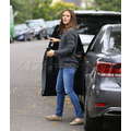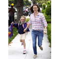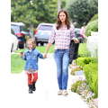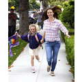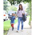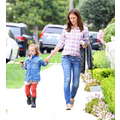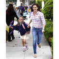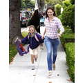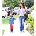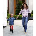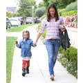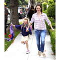 Jennifer and her daughter Violet ran hand-in-hand while leaving school yesterday in Brentwood.