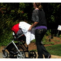 Jennifer Garner takes her baby son for a ride in his stroller.