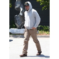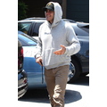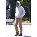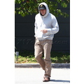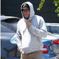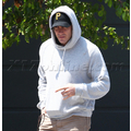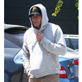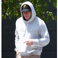 The sexy star covered up his face with a hoodie and a hat...sigh.