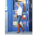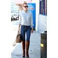 January Jones was spotted in knee-high boots over blue jeans and a button-up in Hollywood.